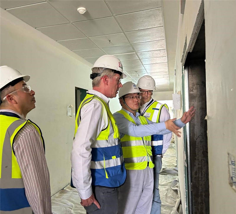 中外工作人员现场检查工作进度。山东电建三公司供图